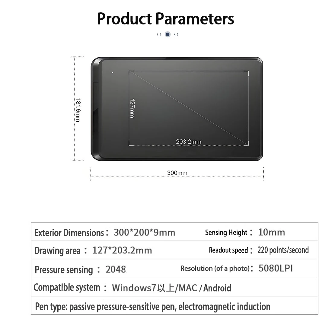 - Tablet length: 300mm